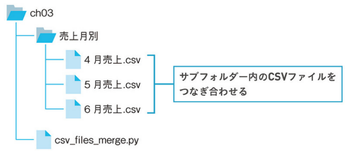 ◯ file.stem 拡張子を除くファイル名を取得 ◯ [row[0], row[1], row[5]] 左から対象行の1列目、2列目、6列目 ◯ datetime.datetime.strptime (row[0], "%Y/%m/%d") 文字列の日付をdatatime型に変換 ◯ int(row[5]) 文字列を整数型に変換 |